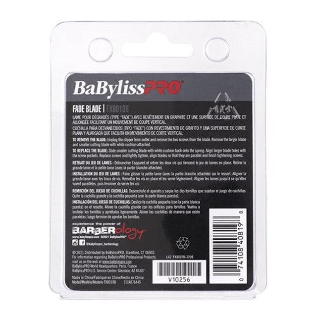 Experience expert influence. BaBylissPRO Replacement Hair Clipper Fade Blade Black FX8010B is designed to be used on any of the BaBylissPRO Lithium Hair Clippers. This exceptional fade blade has a very flat surface compared to a traditional taper blade, getting much closer to the scalp. More personal control over “C” scooping when blending hair. Graphite PVD coating.