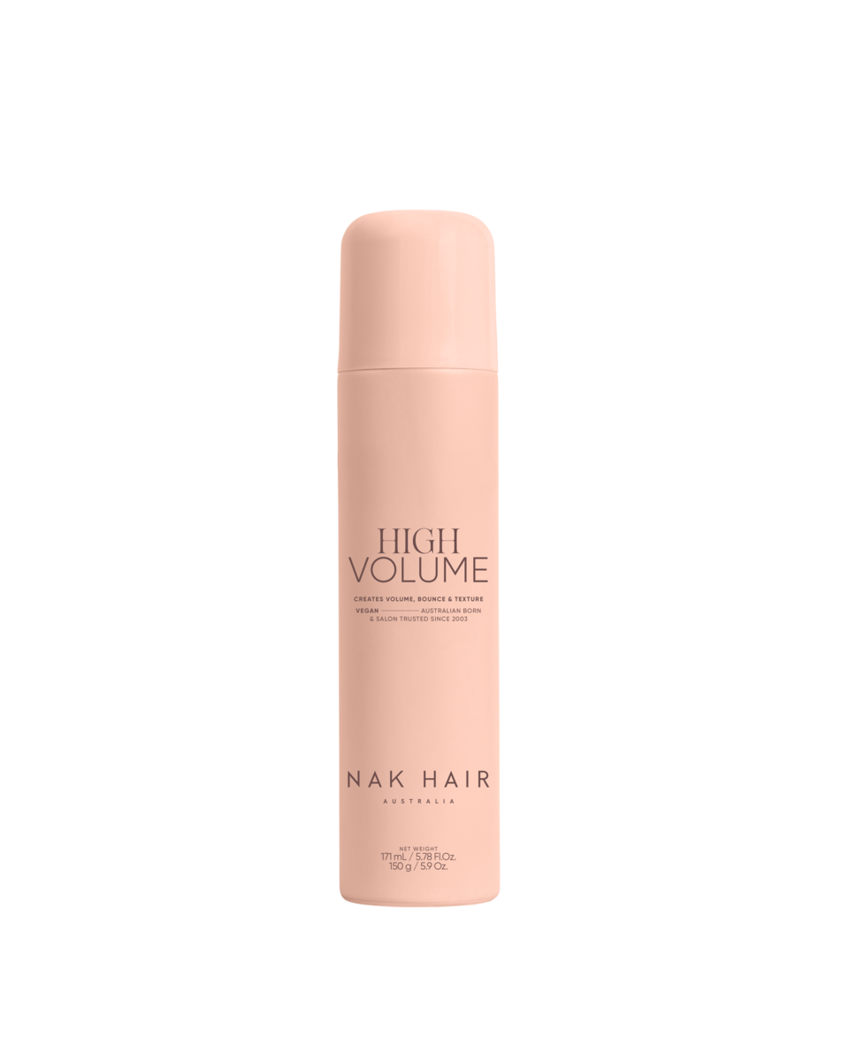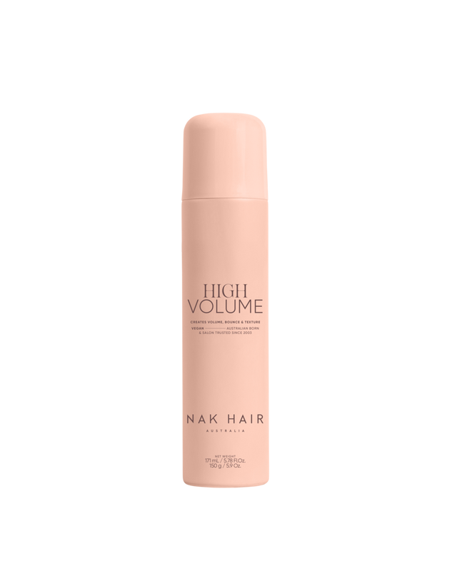 Nak High Volume 150g is a versatile styling spray that creates volume, bounce, and texture, lifting hair strands at the roots to enhance styling fullness and resist against humidity.