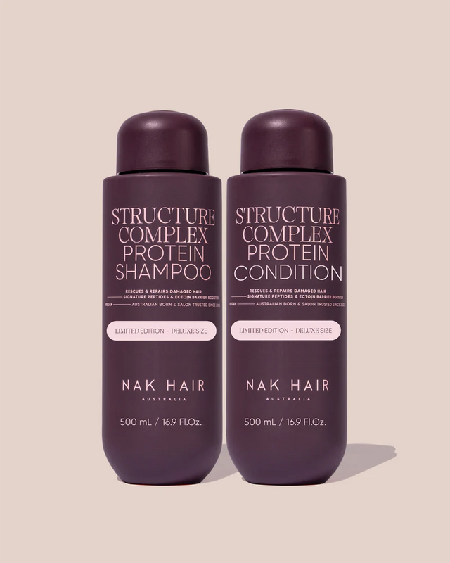 Pack contains limited edition deluxe size Structure Complex Protein Shampoo 500ml & Structure Complex Protein Condition 500ml. While stocks last.