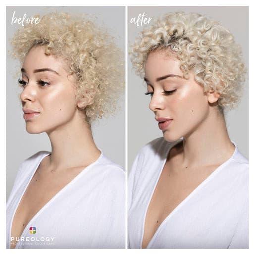 Pureology Strength Cure Blonde Shampoo tones and fortifies brassy, damaged and lightened hair with key ingredients Keravis, Astaxanthin, and Purple Orchid toning pigments and a signature aromatherapy blend of Pear, Rose, and Sandalwood.