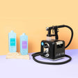This professional spray tan machine is perfect for salons and mobile spray tanners. With a lightweight Applicator with stainless steel components for increased flow, speed & spray tan control that delivers an ultra fine spray mist for accurate and even streak-free professional spray tanning leaving your clients flawless every time. Kit includes: