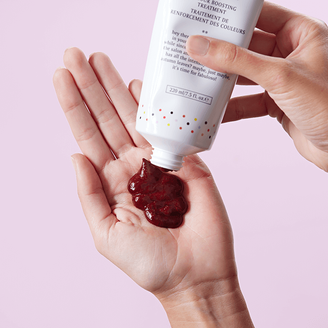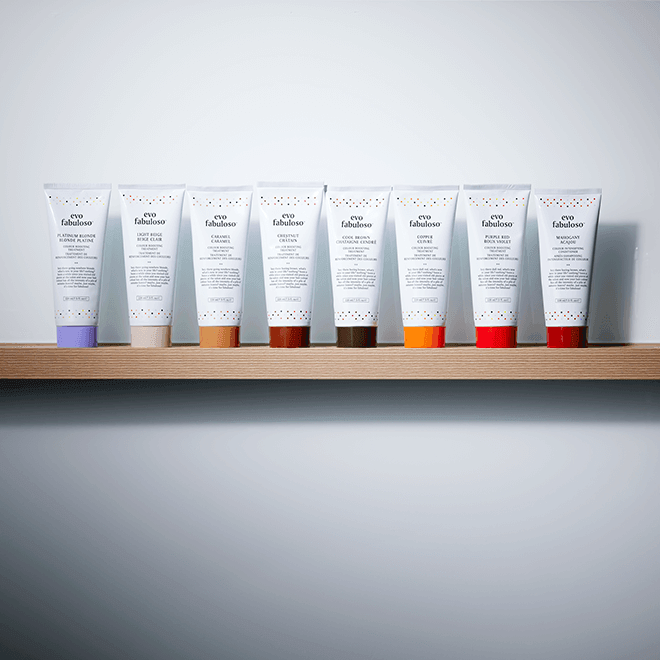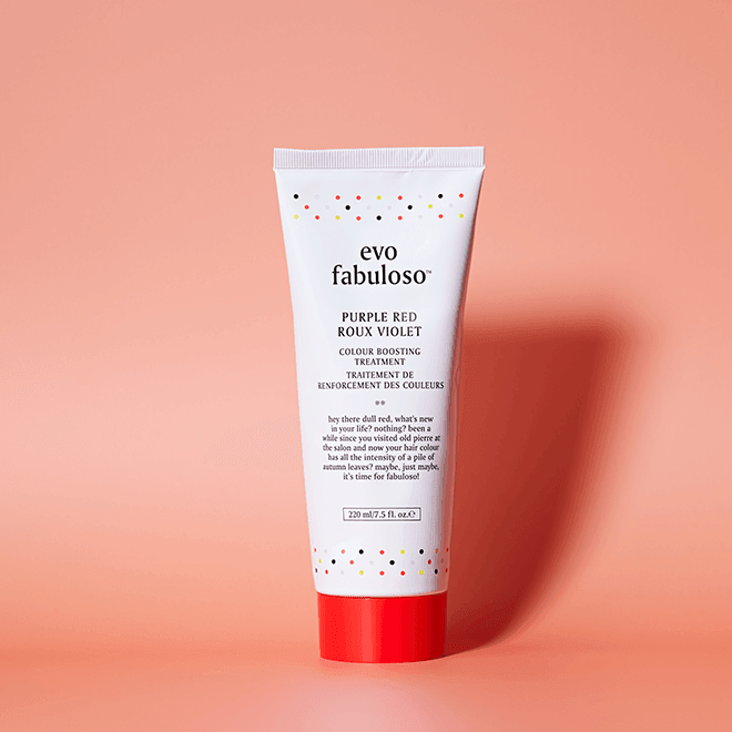 A purple red coloured hair treatment for blonde hair. Achieve a refreshed, revived and toned colour boost in just 3 minutes with Evo fabuloso Colour Boosting Treatments.