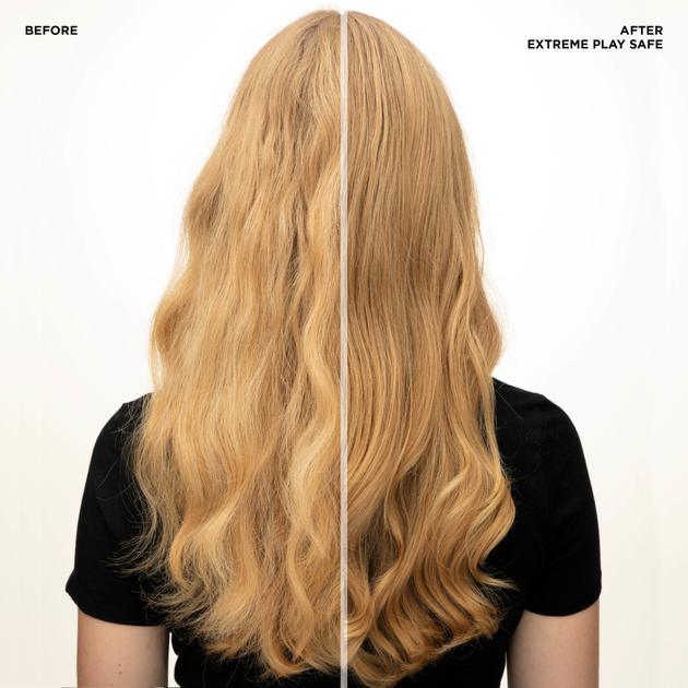 STEP 3: Heat style hair as usual. Extreme Play Safe will protect hair from heat damage up to 450 degrees Farenheit.