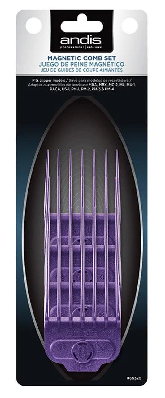 The Andis Magnetic Universal Attachment Set #5, #6, #7, #8 4pcs is a set of replacement combs for Andis clippers that attach magnetically and are made of a strong polymer.