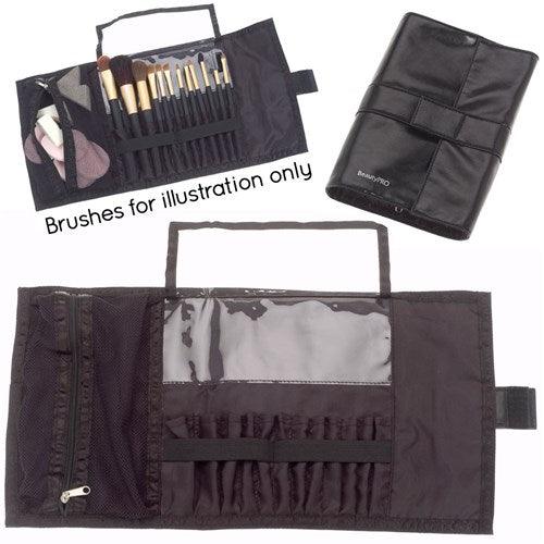 Durable and easy-to-clean. The BeautyPRO Fold-Out Make-Up Pouch has internal pockets to hold all types of brushes and sponges. When you’re done, simply cover brushes with the protective flap, fold and store. Holds 12 brushes.