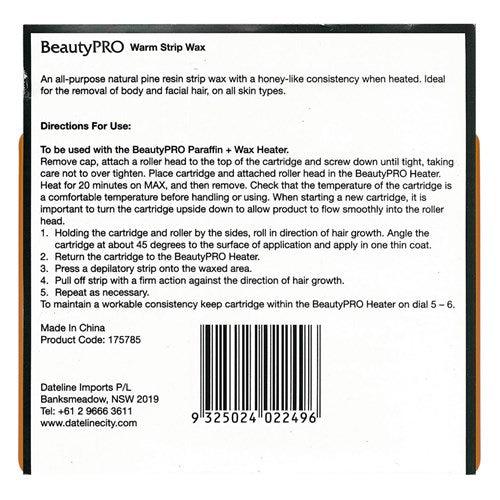 An all-purpose natural pine resin strip wax with a honey-like consistency when heated. Perfect for all skin types. Cartridge slots straight into the BeautyPRO Wax + Paraffin Heater.