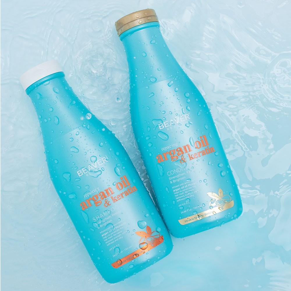 Pre Order  Strengthen. Repair. Brighten. The power of nourishing, antioxidant-rich argan oil and strengthening keratin. Beaver Argan Oil and Keratin Repairing Conditioner 730ml penetrates the hair shaft to plump up the hair cuticle from the inside out. Enjoy newly restored strength, shine and silky softness. This ultra-moisturising conditioner soothes dry, damaged hair to renew...