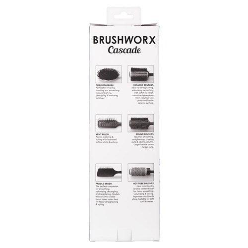Ultra-Comfortable and Great to Hold The ultimate all-rounder! Brushworx Cascade Paddle Hair Brush takes the salon essential and makes it even better. More comfortable, more lightweight and more balanced. This is the perfect companion for effortless detangling, smoothing and straightening. A texturised, rubberised handle improves grip and control. Nylon bristles create the perfect amount...