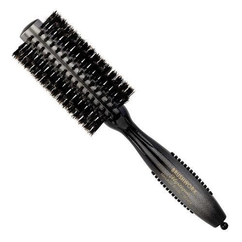 The power of tourmaline to effortlessly neutralise static, reduce frizz and enhance radiant shine. Brushworx Mystique Radial Hair Brush Medium utilises tourmaline’s superior negative ion output for shinier, smoother and silkier styling. A blow-drying essential, this radial brush creates controlled blow-dries, courtesy of the combination of the tourmaline coated barrel and boar bristles. Best for smoothing, straightening, volumising and adding movement. Boar bristles distribute the scalp’s natural oils for a soft, luxurious finish. Rubberised handle for comfortable, non-slip hold. From Brushworx, the 100% Australian-owned brush authority.