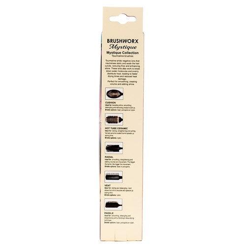 The Magic of Tourmaline The power of tourmaline to effortlessly neutralise static, reduce frizz and enhance radiant shine. Brushworx Mystique Radial Hair Brush Small utilises tourmaline’s superior negative ion output for shinier, smoother and silkier styling. A blow-drying essential, this radial brush creates controlled blow-dries, courtesy of the combination of the tourmaline coated barrel...