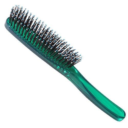 The Brushworx Soft and Smooth Brush Green provides the perfect balance of flexible, yet firm nylon bristles for effective brushing! Ideal for brushing hair prior to shampooing and for removing styling products such as hairspray, or to remove knots and tangles. Designed to invigorate the scalp whilst leaving hair smooth, shiny and healthy looking.