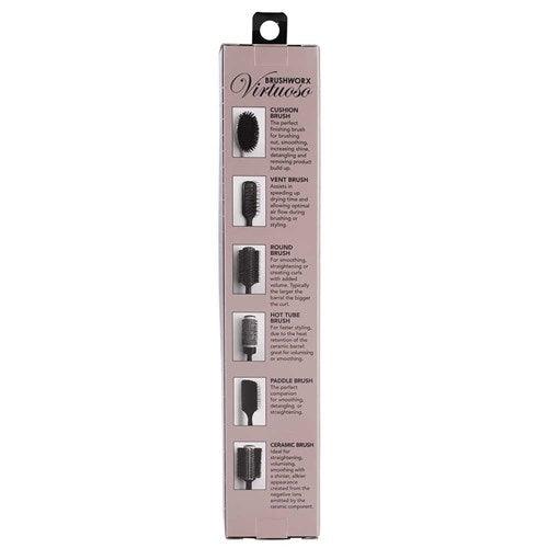 Virtuoso of Hairstyling A Virtuoso of the hairstyling world. With beautiful rose gold finish, the Brushworx Virtuoso range enhances smoothness, silkiness and shine. Brushworx Virtuoso Radial Brush in Medium (33mm barrel) is perfect for smoothing, adding shine and creating volume on short to medium hair. 100% boar bristles help to...