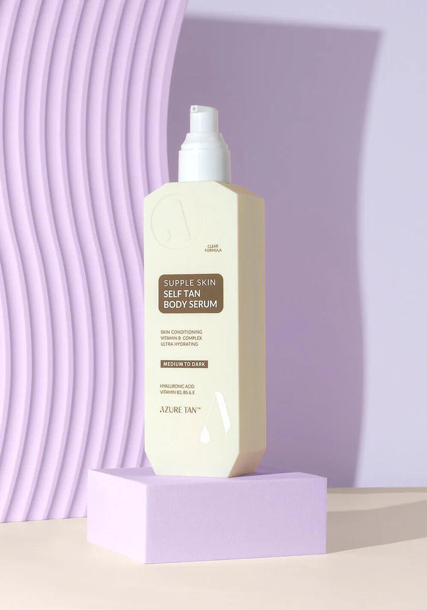 Azure Tan Supple Skin Body Tanning Serum is designed to lock in moisture, leaving the skin hydrated, plump and feeling velvety soft, whilst providing a glowing tan.