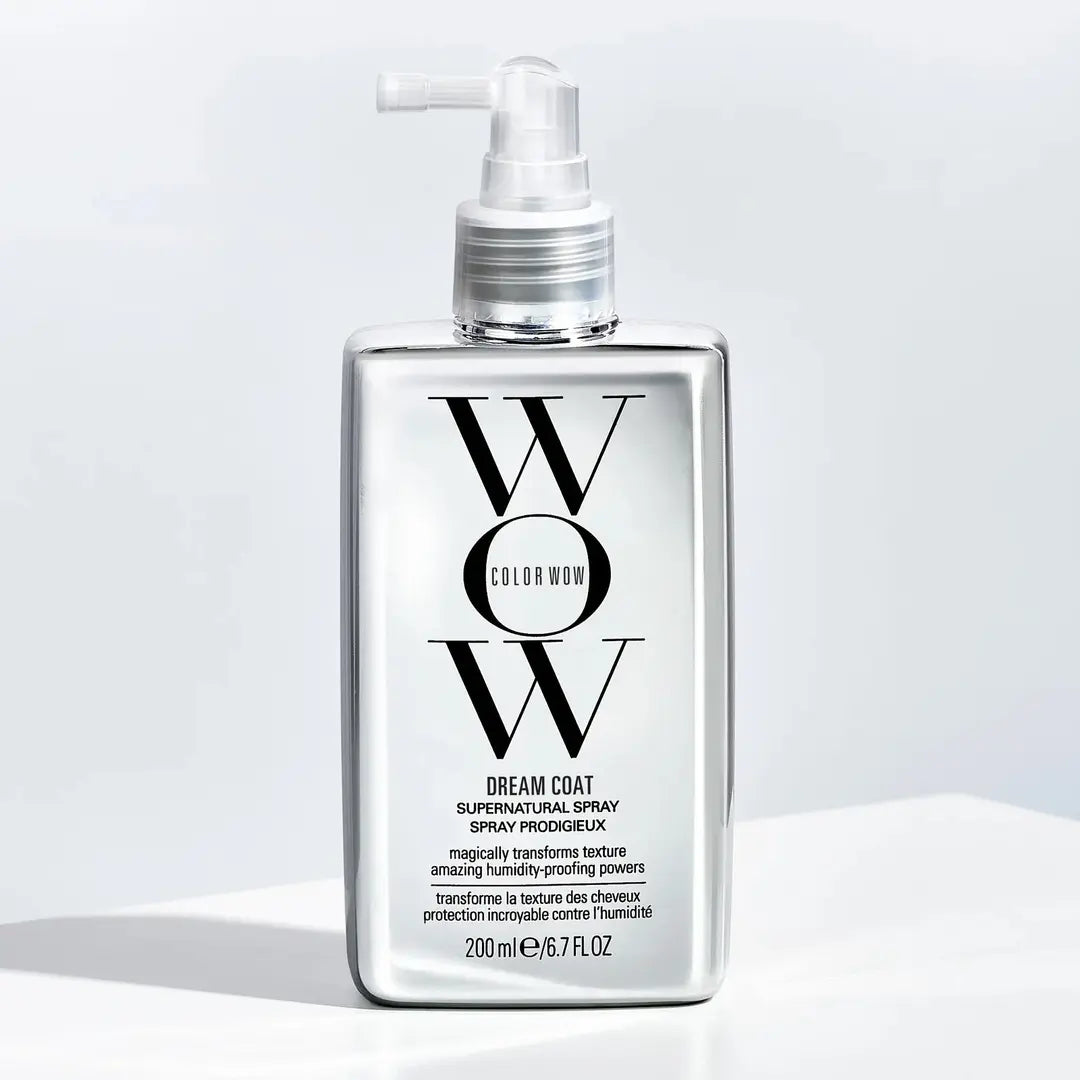 Dream Coat Supernatural Spray: This innovative spray acts as a moisture-repellent, creating a waterproof shield around each hair strand. It ensures your hair remains smooth and frizz-free, even in high humidity, while adding a glossy, mirror-like shine.