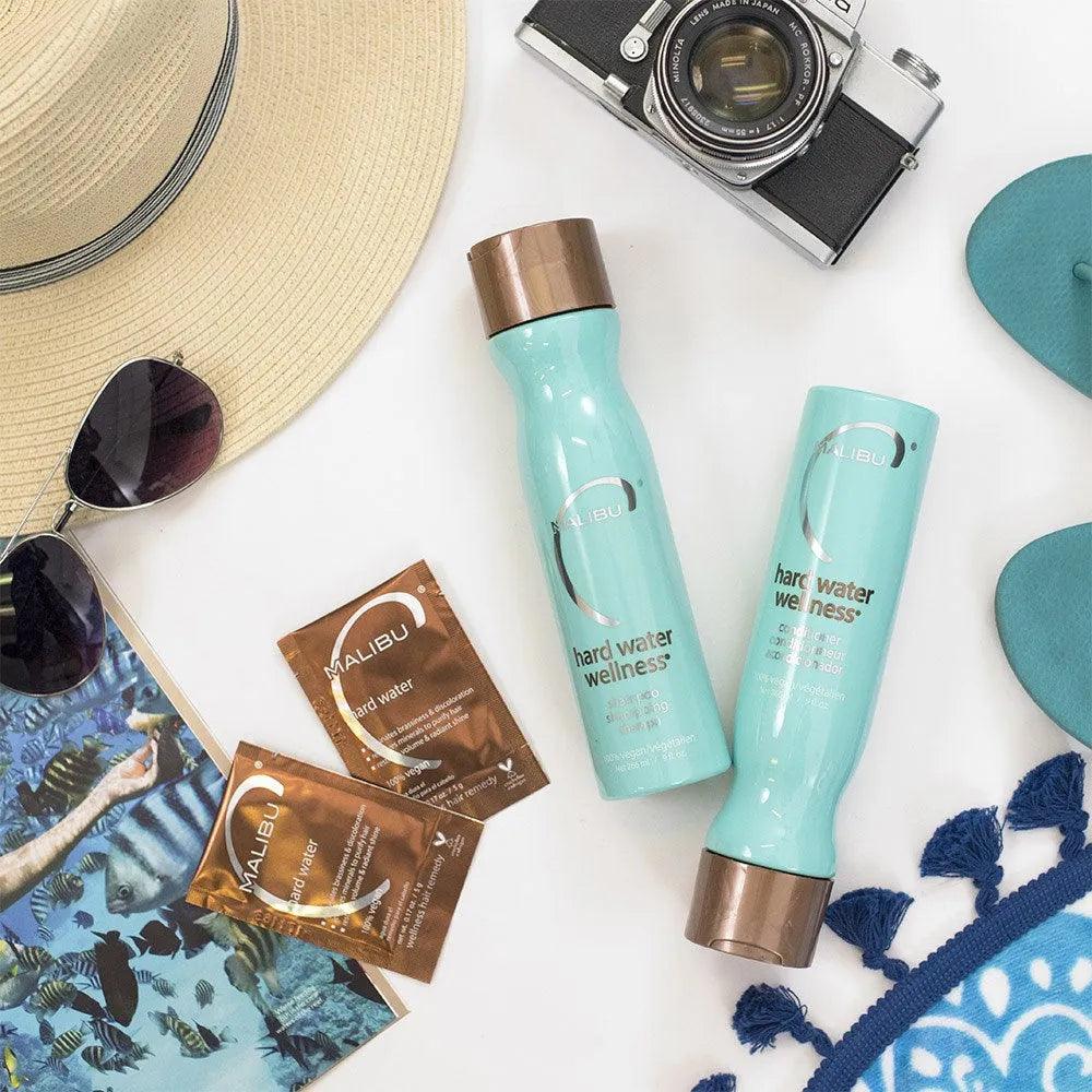 The perfect defence against dry, dull, discoloured and damaged locks caused by minerals in water, the 100% vegan Malibu C Hard Water Wellness Hair Collection leaves hair instantly softer, shinier and full of body. Eliminates brassiness, discolouration, and damage caused by mineral absorption, and preserves the condition and vibrancy of hair exposed to hard or soft water. This product is n