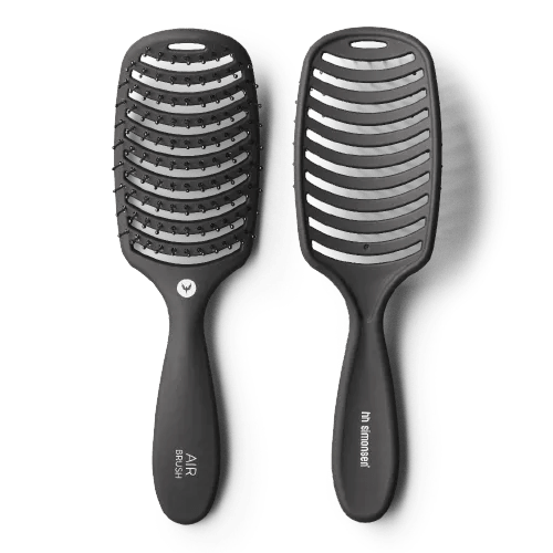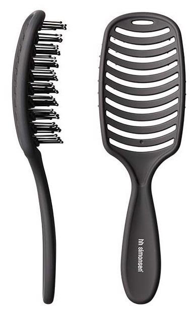 Maximum drying, minimum breakage. Danish design which truly excels. HH Simonsen Air Brush features a clever airy design, allowing the airstream from a hair dryer to run freely through while assisting you to create an extraordinarily quick blow-dry. This airy brush is heat-resistant up to 240 Celsius, so you can be assured blow-drying is its favourite task. Innovative, flexible and strategically positioned bristles glide easily through hair to minimise damage.