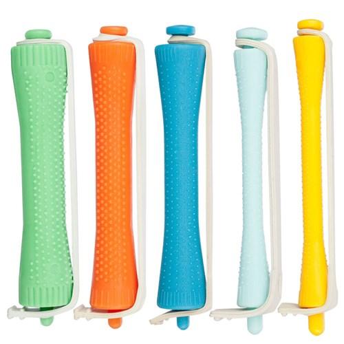 These concave perm rods from Dateline Professional are slightly thinner toward the centre and flare at the ends. This gives a slight variance in the curl making it looser to the outside of the segment for a more natural look. Perfect for creating small, kinky curls. 4mm Perm rods.