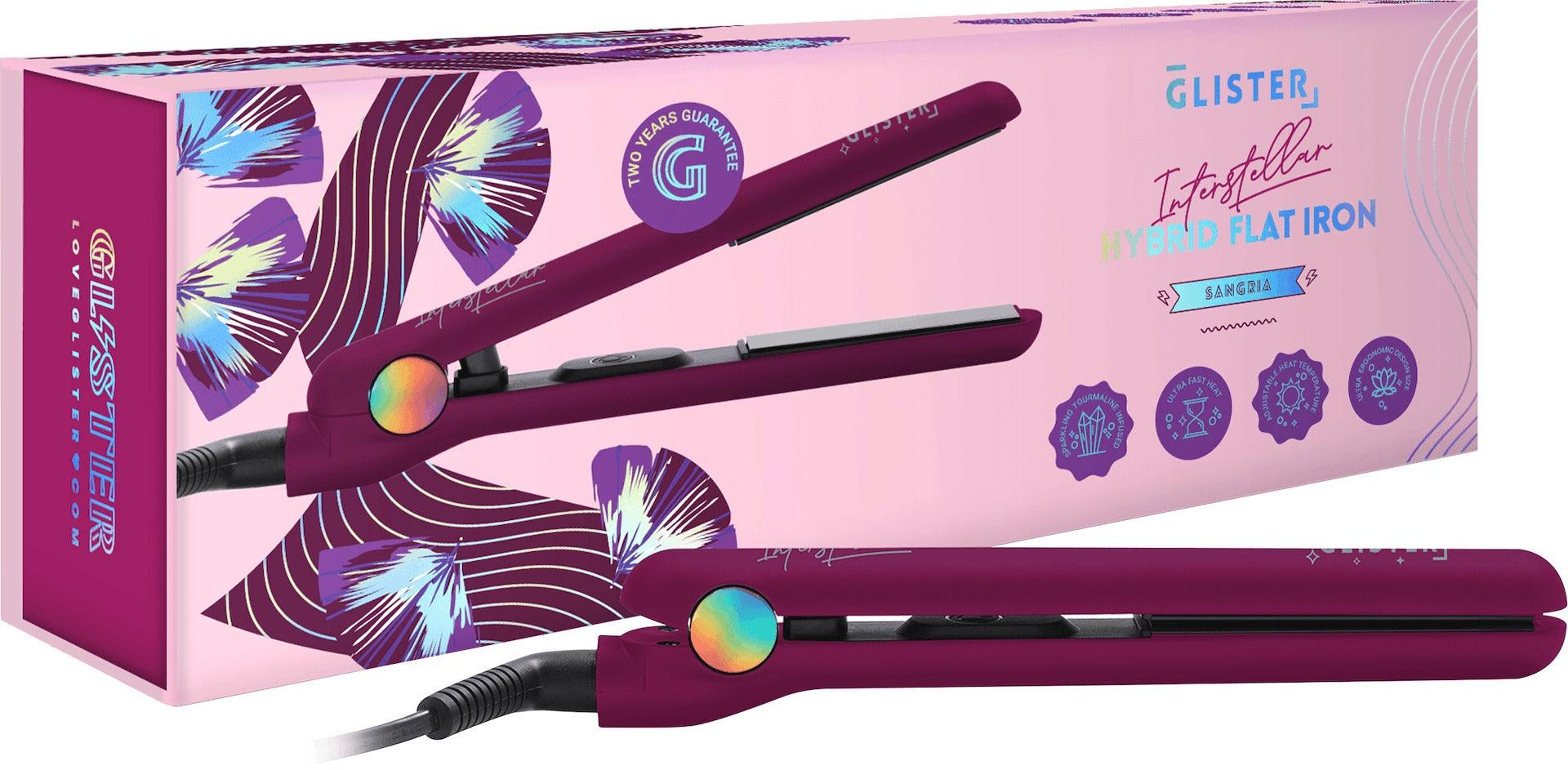 Clients can style their tresses at the speed of light with the Glister Interstellar Midi Hybrid Flat Iron. With 22mm floating tourmaline coated ceramic plates that heat up quickly and evenly, hair is left frizz-free and sleek with no damage from pulling or tugging. Glister's OnePass far-infrared technology and ultra-fast heat time ensures the job is done on the first pass, reducing thermal damage. The ergonomic design and 360° swivel cord ensures the flat iron is easy to use, and the worldwide voltage ensures clients can achieve salon-straight hair anywhere and everywhere.
