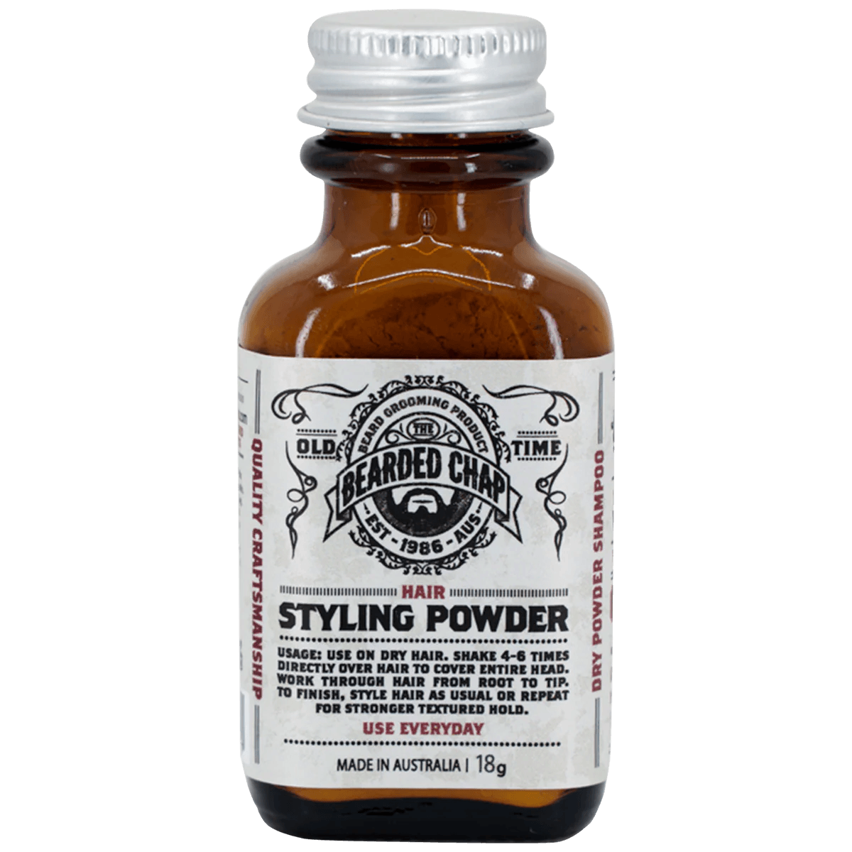 Bearded Chap’s styling powder is 100% natural and made up of two different Australian clays which gives you an incredible fine grit giving structure to the hair. Silk powder provides 18 kinds of amino acids and trace elements essential to the human bod, prevents dryness of the skin on your scalp and improves luminance as well as the elastic behaviour of your hair.