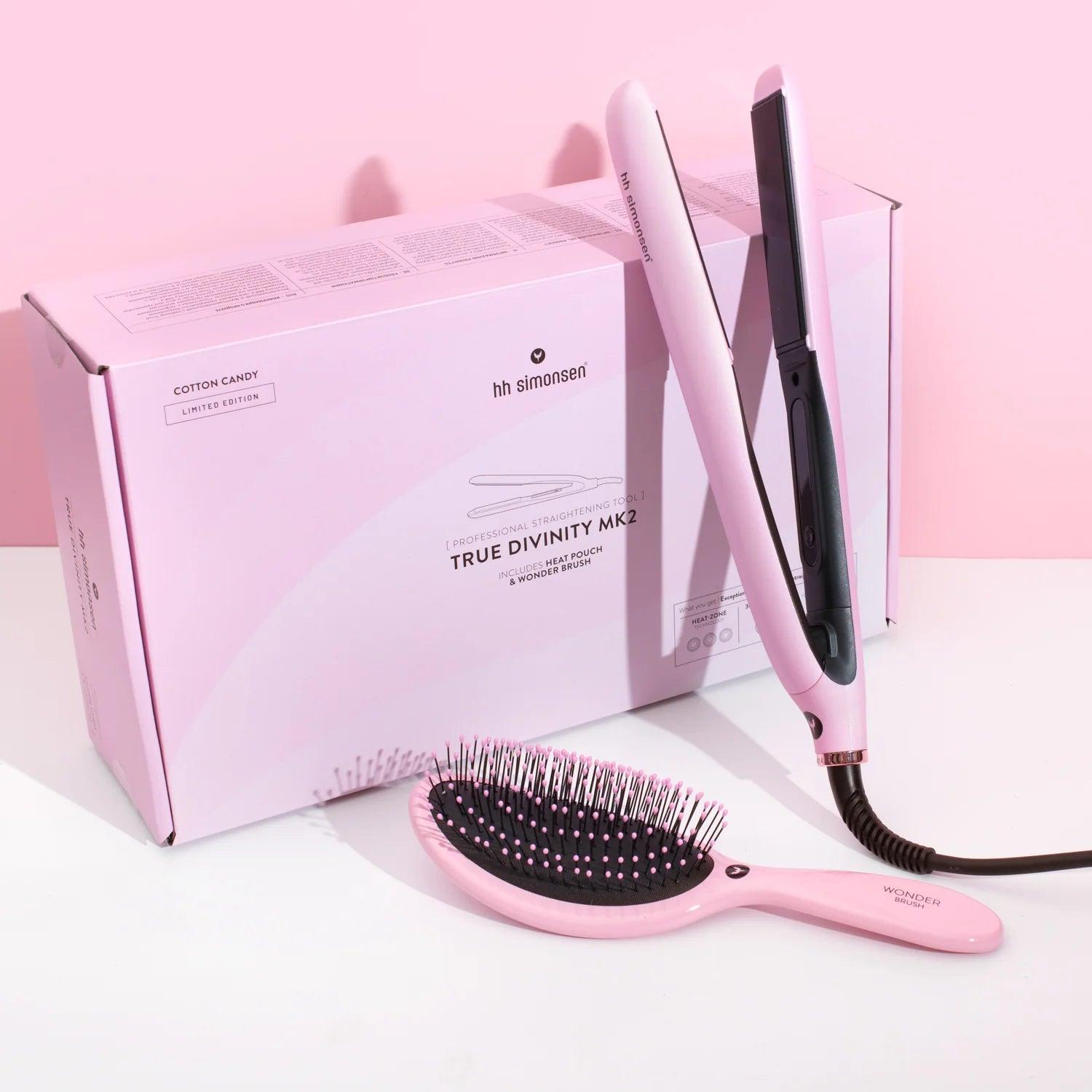 The divine hair straightener with a taste for luxury. HH SIMONSEN True Divinity MK2 Hair Straightener Pink is an exclusive styling tool which treats hair with care. Developed in conjunction with top hairdressers, this hair straightener features 360◦ floating plates for optimal plate-to-hair contact. The Teflon-coated plates with tourmaline deliver effortlessly smooth and shiny styling. Adjustable heat settings from 160°C to 230°C adapt to every hair type. Cold tip ends for safety. Includes free HH Simonsen Wonder Brush, the extraordinarily gentle detangling brush which minimises damage to hair. Danish design at its very best.