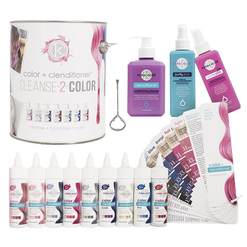 Paint the Town… Whatever Colour You Choose! Keracolor Color Clenditioner Colour Shampoo Paint Can includes everything you need to dive into the colour-full world of Keracolor! Includes full sized samples of Keracolor Clenditioner, Purify Plus, Purify Plus Light, a handy swatch book, and nine 59ml samples of the popular Keracolor Color...