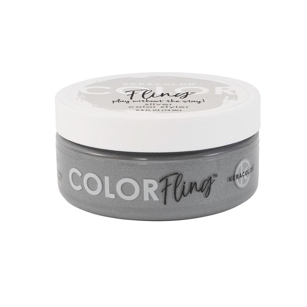 No commitment colour for a great night out! Keracolor Color Fling is a temporary hair colour styling cream which adds pops of colour and then washes out in only one shampoo. Suitable for all hair colours, including brunettes, Keracolor Color Fling provides light hold for creative styling. From soft waves to bold braided mohawks, simply apply to dry hair, comb and style for a fun fling with colour.