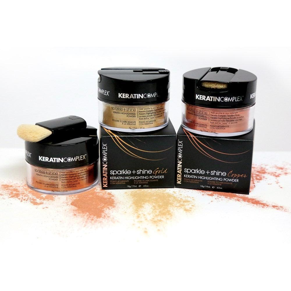 Add Sparkle to Your Hair Colour Keratin Complex Sparkle + Shine Keratin Highlighting Powder is a no-mess, no-fuss powder that takes your hair from dull to wow in seconds! Simply brush this shimmering powder wherever shine or highlights are desired, and build as needed. It’s also a perfect touch up between salon...