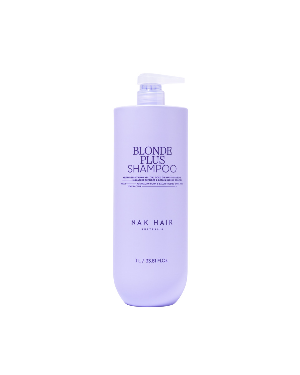 The NAK Signature Blonde Plus Shampoo 1000ml is a premium hair care product designed to enhance and maintain blonde hair.