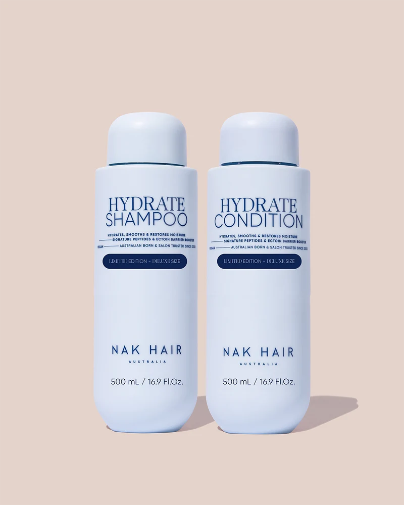 Pack contains limited edition deluxe size Hydrate Shampoo 500ml & Hydrate Condition 500ml. While stocks last.