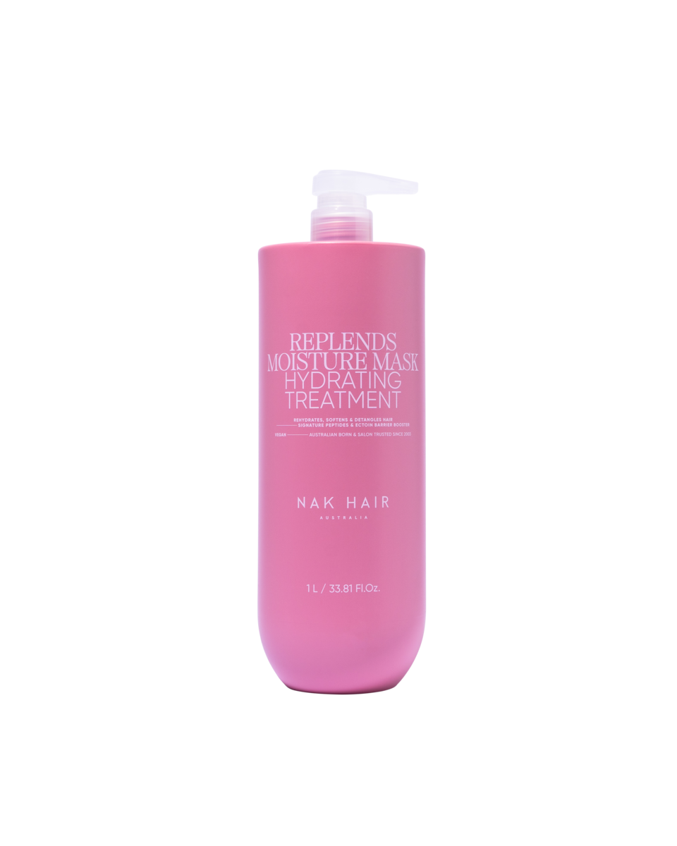 The NAK Signature Replends Moisture Mask 1000ml is a luxurious hair treatment designed to deeply hydrate and rejuvenate dry, damaged hair.