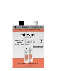 Nioxin System 4 Cleanser Shampoo and Scalp Therapy Revitalising Conditioner 1000ml Bundle is a complete professional thickening treatment for colored hair with progressed thinning that helps you achieve thicker, fuller-looking hair and restore moisture balance.