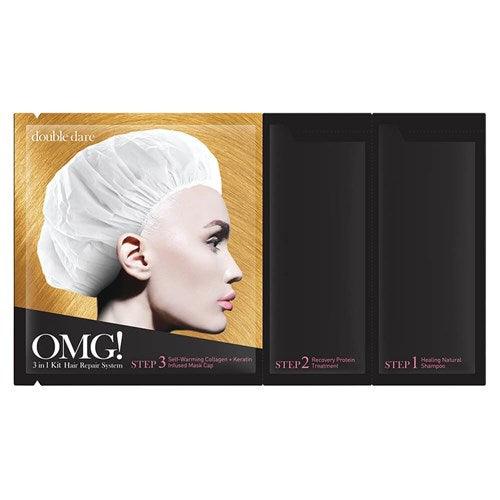 OMG! 3 in 1 Kit Hair Repair System is an easy to use, on-the-go, self-heating hair treatment. Wash with the OMG! Shampoo, then apply the Recovery Protein Treatment and Self-Warming Collagen + Keratin Infused Mask Cap. Developed with innovative self-warming technology to help the fortifying and strengthening formula of Protein, Collagen and Keratin to penetrate from scalp to ends for shinier, softer, radiant-looking hair.
