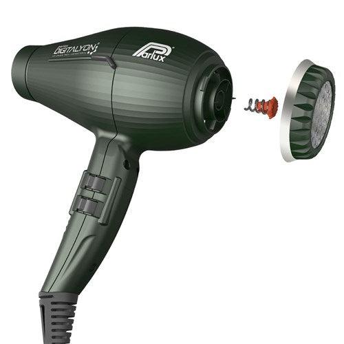 Parlux goes digital. Parlux DigitAlyon Air Ionizer Tech Antibacterial Hair Dryer and Diffuser in Anthracite (dark grey) is more powerful, more lightweight and more quiet. With the ultra-long life digital motor delivering an airflow of 88m3/h, all-day salon styling becomes a breeze. New, wave heating element with variable geometry increases power to an astounding 2400 watts. Air Ionizer Tech ionic and ceramic technology softens hair and imbues shine while speeding up drying time. Special antibacterial paint creates an unfavourable surface for the proliferation of microorganisms and helps maintain hygiene during use. Exceptionally lightweight, ergonomic and perfectly balanced. Includes Parlux MagicSense Diffuser with perfect temperature/airflow ratio.