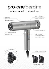 Pro-One Aerolite Ionic Ceramic Professional Hairdryer Titanium is our most powerful hair dryer with Diffuser, It is the ultimate upgrade to your hair styling routine. Not only is this small blow dryer extremely lightweight, but it has been engineered with one of the most expensive and advanced motors in the market.