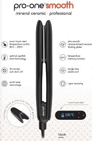 Pro-One Smooth straightener features advanced heating technology and ultra-smooth mineral ceramic floating plates. Create smooth, sleek straight hair or voluminous curls with incredible shine. Super-fast ceramic optimal rapid Tek heat technology Floating plates for better grip, adjustable temperature control 80c-230c with smart touch oled Ideal for flicking, curling, and straightening....