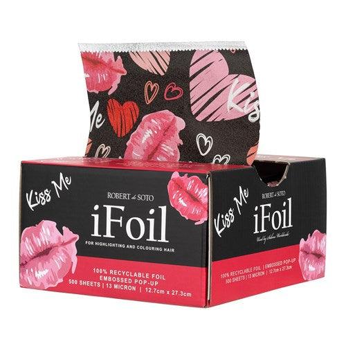 Foil Made Fun Add a little fun to your salon style! Great for all colouring services, this patterned Robert de Soto iFoil Embossed Pop Up Kiss Me is foil with flair. With 100% recyclable foil , each box contains a generous 500 sheets and features a small push-up action underneath...