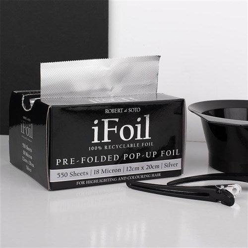 Pre-Folded Foil Made Fast and Easy Fast and easy pre-folded hairdressing foil. Robert de Soto makes foil super convenient with his iFoil Pre-Folded Pop-Up Silver 18 Micron Foil in Medium. This 100% recyclable foil is all about ensuring colouring and highlighting is easy and efficient. The convenient tissue box style...