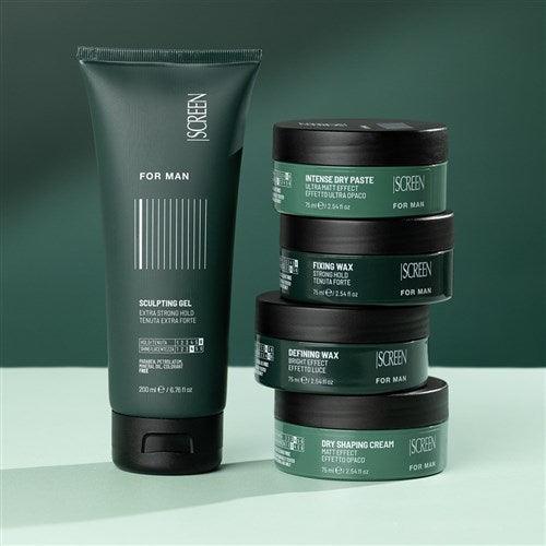 Screen for Man, Italian-made hair and skin care totally dedicated to men’s daily needs. Screen for Man Intense Dry Paste is a strong hold hair styling shaping clay paste with a matte effect. Characterised by quality ingredients and a powerful formulation, this intense clay paste will never leave unwanted residue. Great for ultra-matte texture with a dry effect. Enriched with hops extract, the paraben-free, colourant-free formula is soothing and nourishing.
