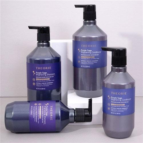 The Power Of Purple Sage Brighten and restore vibrant blonde and silver hair with the Theorie Purple Sage Brightening Conditioner. Professionally formulated to neutralise brassy and yellow tones. Infused with keratin, sage, helichrysum extract and grapeseed oil, this conditioner seals the cuticle and revitalises hair texture to smooth, reduce frizz and restore natural...