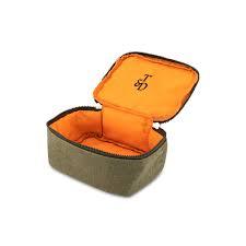 1 x Olive Canvas Bag of joy. T&D's signature water-resistant orange lining protects your potions inside our toiletries bag. The wide clam-style zip opening lets you organise & access your entire range of supplies quickly plus the robust yet flexible canvas outer saves crucial space in your carry-on.