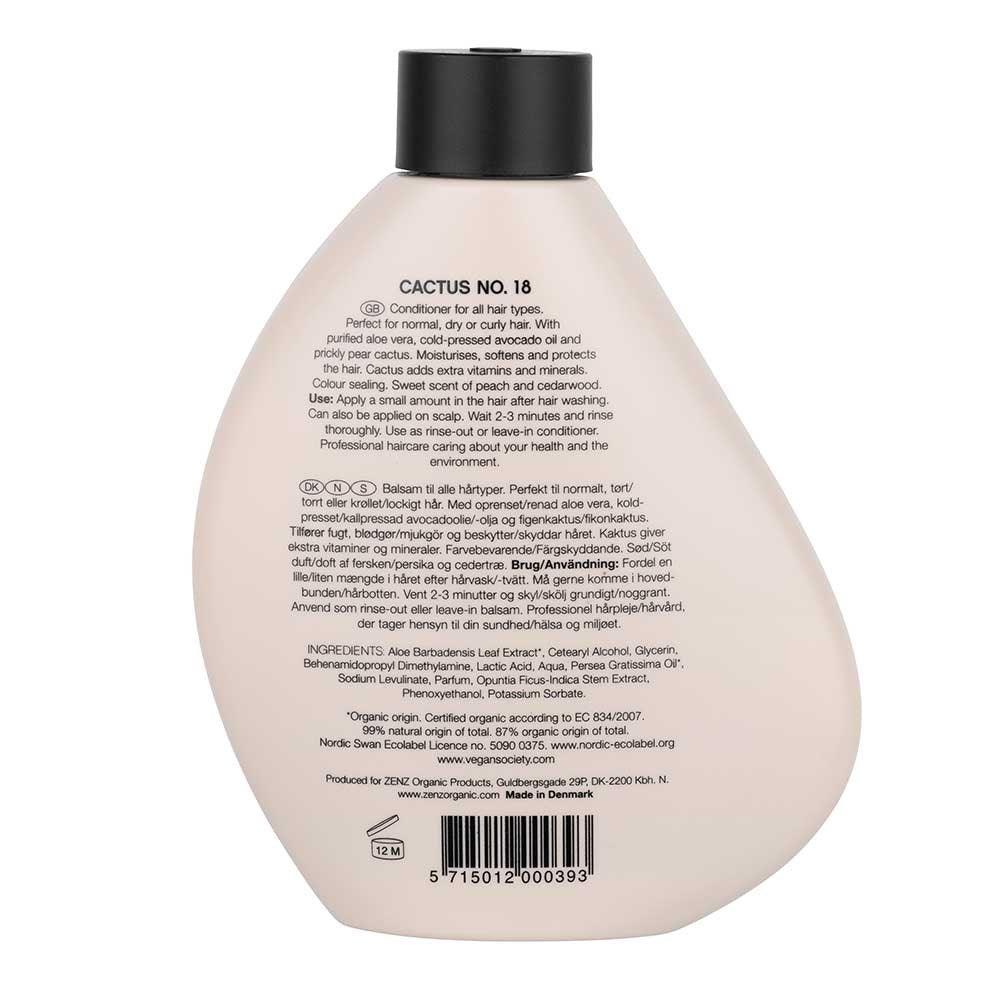 With Zenz, you do something good for yourself, for others and our environment. Made in Denmark from nature’s best ingredients, Zenz Cactus No. 18 Conditioner softens, moisturises and protects without weighing hair down. With 99% ingredients of natural origin and 87% certified organic ingredients, this conditioner is ideal for dry or curly hair. Cactus infuses essential nourishment. Sweet scent of peach and cedarwood.